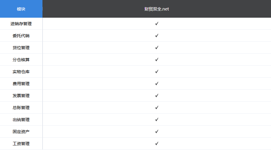 功能對比表